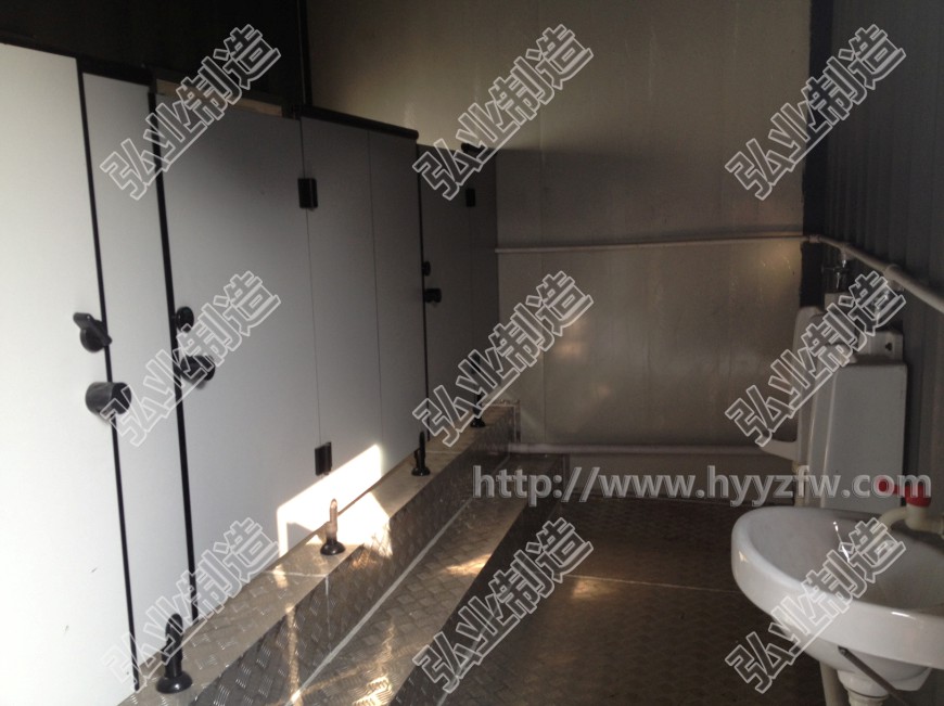 集裝箱房屋流動廁所:四男一女,306不銹鋼、鋁花紋板裝修 內(nèi)部配有洗手盆、小便器等。